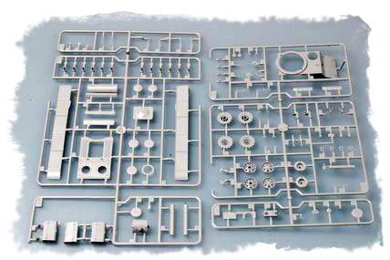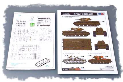 Plastikmodellbausatz eines russischen WWII Kampfpanzers mit 216 Teilen und Photoätzteilen. Länge gebaut: 145 mm / Breite: 69 mm / Höhe: 58 mm.