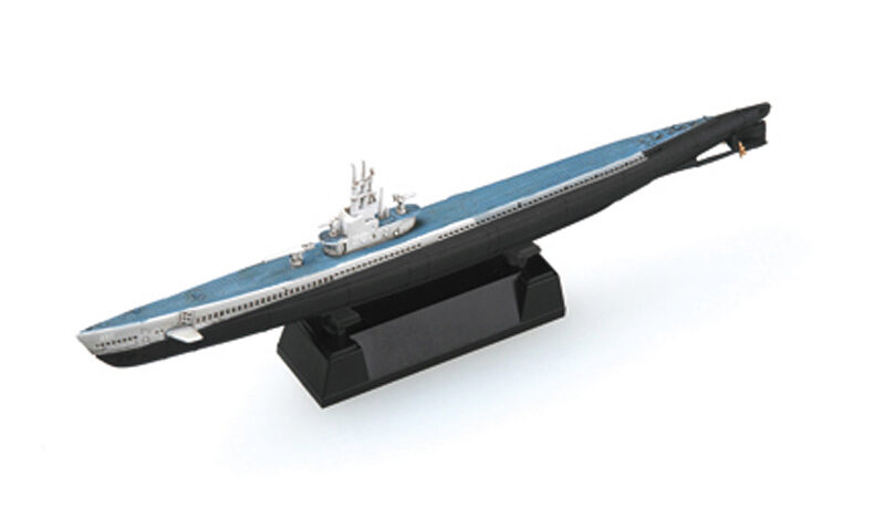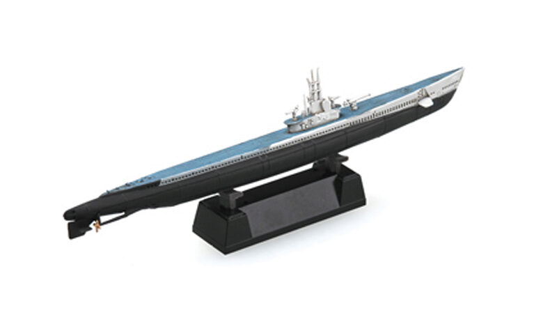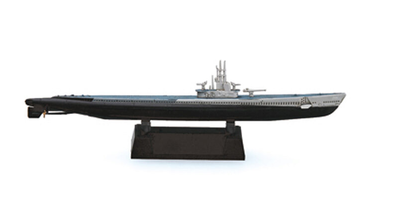Plastikmodellbausatz eines US-amerikanischen WWII U-Bootes mit 13 Teilen. Ständer liegt bei. Länge gebaut: 135,7 mm / Breite: 11,1 mm.