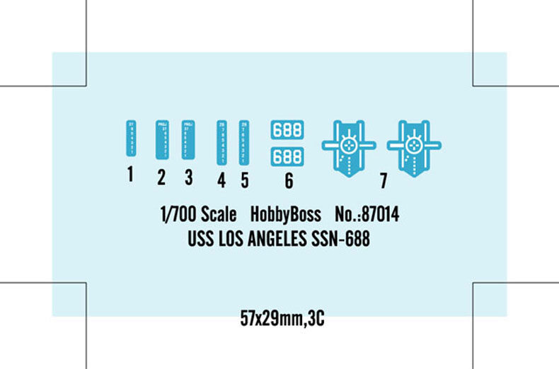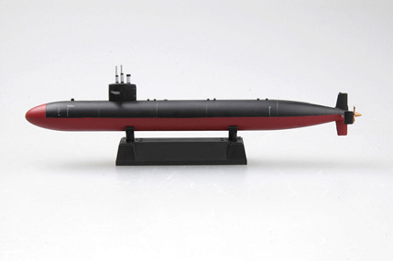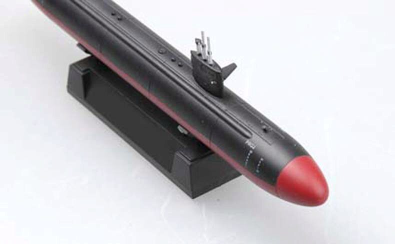 Plastikmodellbausatz eines modernen US-amerikanischen U-Bootes mit 10 Teilen. Ständer liegt bei. Länge gebaut: 156,7 mm / Breite: 14,5 mm.