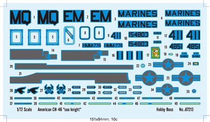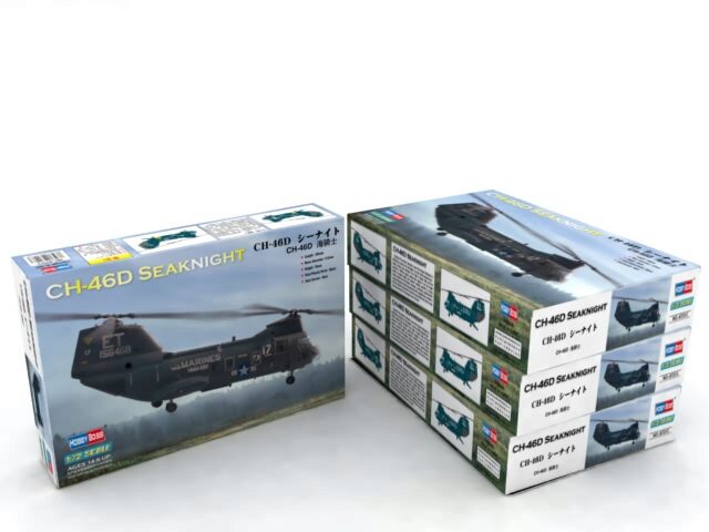 Plastikmodellbausatz eines US-amerikanischen Versorgungshubschrauber aus den 1960er Jahren mit 55 Teilen. Markierungen der US-Marines und der US-Navy. Länge gebaut: 193 mm / Rotordurchmesser: 212 mm / Höhe: 70 mm.