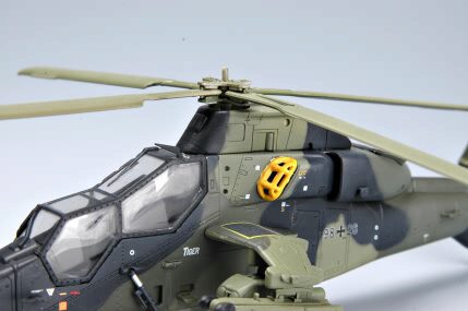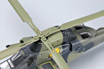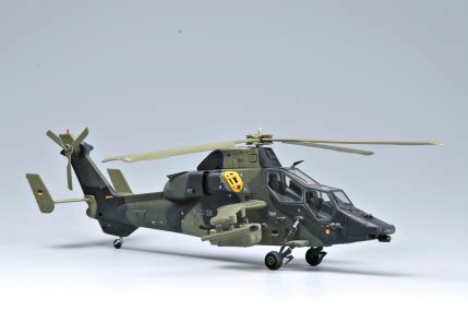 Plastikmodellbausatz eines modernen europäischen Kampfhubschraubers der 1980er Jahre mit 71 Teilen. Zwei Markierungen der deutschen Streitkräfte. Länge gebaut: 193 mm / Rotordurchmesser: 179,3 mm / Höhe: 72 mm.