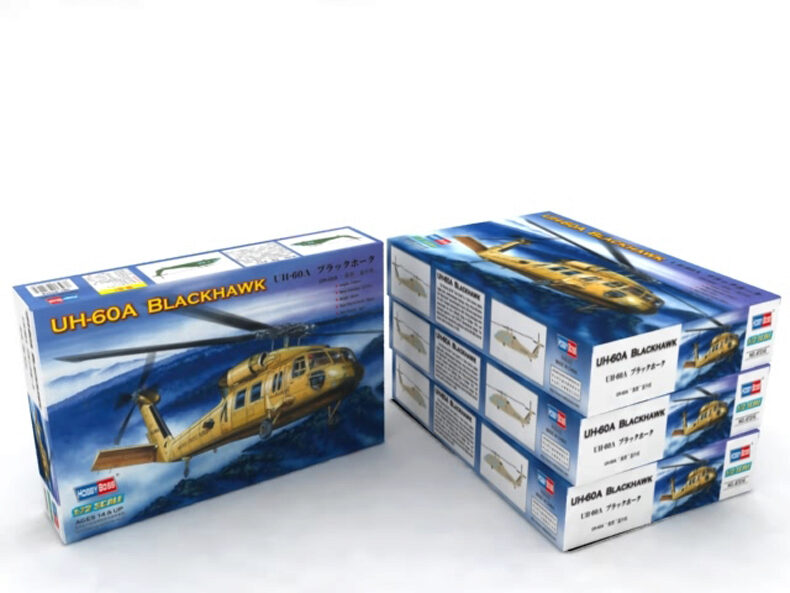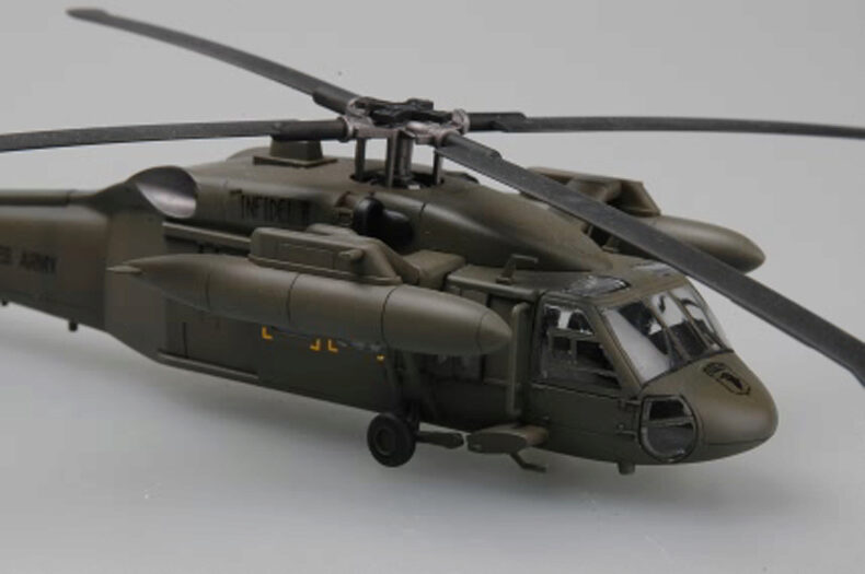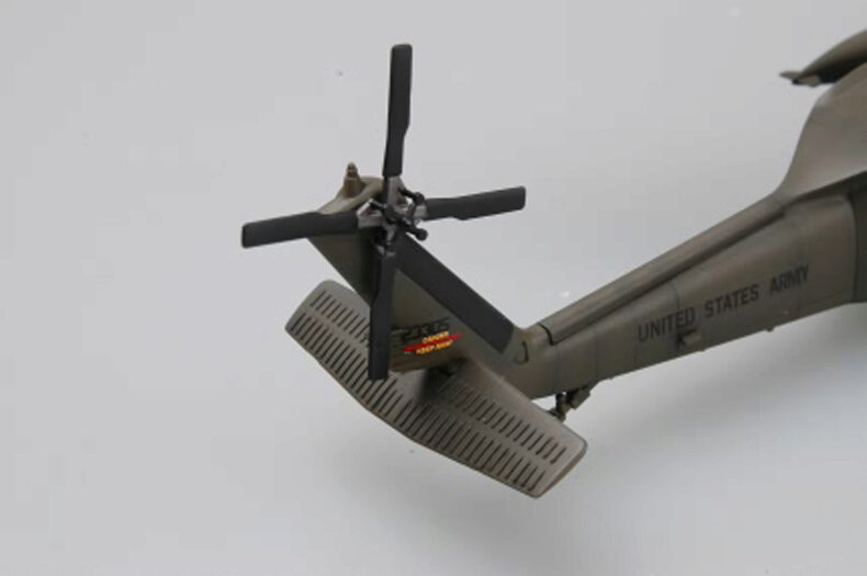 Plastikmodellbausatz eines US-amerikanischen Versorgungs-Hubschraubers aus den 1970er Jahren mit 86 Teilen. Markierungen der US-Army im Golf-Krieg. Länge gebaut: 273,7 mm / Rotordurchmesser: 225,6 mm / Höhe: 52 mm.