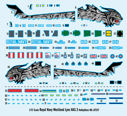 Plastikmodellbausatz eines britischen Mehrzweckhubschraubers aus den 1970er Jahren mit 86 Teilen. Markierungen der britischen Marine. Länge gebaut: 156,94 mm / Rotordurchmesser: 161 mm / Höhe: 52,7 mm.