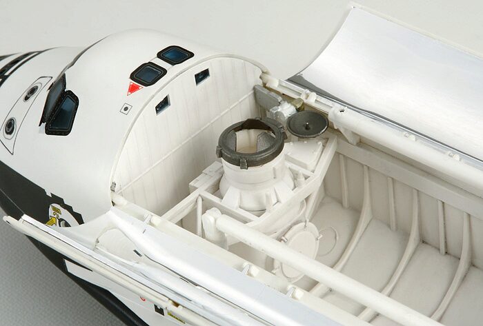 Das Standmodell ist eine Nachempfindung des Space Shuttles Atlantis, welches erstmals am 12. April 1981 von der NASA gestartet wurde. Dieses Shuttle führte während seiner 30-jährigen Dienstzeit zahlreiche historische Missionen durch wie z.B. den Bau der Internationalen Raumstation. Die letzte Mission führte die Atlantis am 21. Juli 2011 durch. Die gesamte Shuttle-Flotte soll nun in US Museen ausgestellt werden. Die TAMIYA Modellbaukasten-version besticht durch hohe Passgenauigkeit als auch durch Detailtreue.