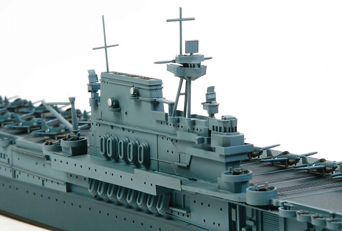 Das Standmodell ist eine Nachempfindung des USS Yorktown CV-5 Flugzeugträger, welcher 1937 als erstes Schiff der Namensvetter Klasse und der sechste Flugzeugträger der US-Marine fertiggestellt wurde. Als der Pazifikkrieg ausbrach, wurde der Flugzeugträger das Flaggschiff der Task Force 17 unter dem Kommando von Konteradmiral Frank J. Fletcher und führte eine Reihe von Operationen rund um den Pazifik durch. Während der Schlacht am Korallenmeer im Mai 1942 half die Yorktown CV-5, den Vormarsch der japanischen Marine auf Neuguinea trotz schwerer Schäden zu vereiteln. In der Schlacht von Midway besiegten die Yorktown und ihre Schwesterschiffe USS Enterprise und USS Hornet die japanische mobile Flotte, doch die Yorktown selbst erlitt durch Torpedo- und Bombenschläge des Flugzeugs des japanischen Flugzeugträgers Hiryu schweren Schaden.