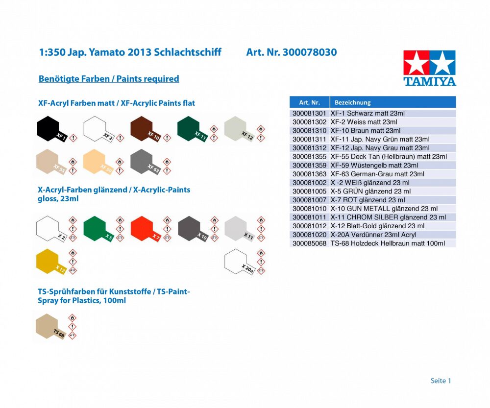 Das Standmodell ist eine Nachempfindung eines Schiffs mit dem Namen Yamamoto. Die Yamamoto wurde 1941 fertiggestellt und wurde durch amerikanische Flugzeugträger der Marine im Südchinesischen Meer, während einer Einwegmission nach Okinawa, zerstört. Durch die TAMIYA Modellbaukastenversion ist es möglich, das Schiff detailreich darzustellen, nachdem man es mithilfe der hohen Passgenauigkeit zusammengefügt hat.