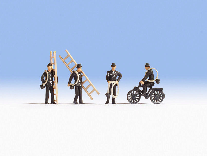 Das hübsche Set enthält vier Schornsteinfeger in ihrer typisch schwarzen Arbeitskleidung. Zwei Schornsteinfeger tragen eine Leiter, einer fährt auf dem Fahrrad. Schornsteinfeger ist ein Handwerksberuf, der sich mit der Reinigung und Kontrolle von Feuerstätten beschäftigt. Der sogenannte schwarze Mann gilt in weiten Teilen der Welt als Glücksbringer. Wer ihn/sie berühre, habe Glück (im neuen Jahr). Die Modellfiguren in unserem Set sind im Maßstab 1:87 (Spur H0, ca. 2 cm hoch) ausgeführt und handbemalt.