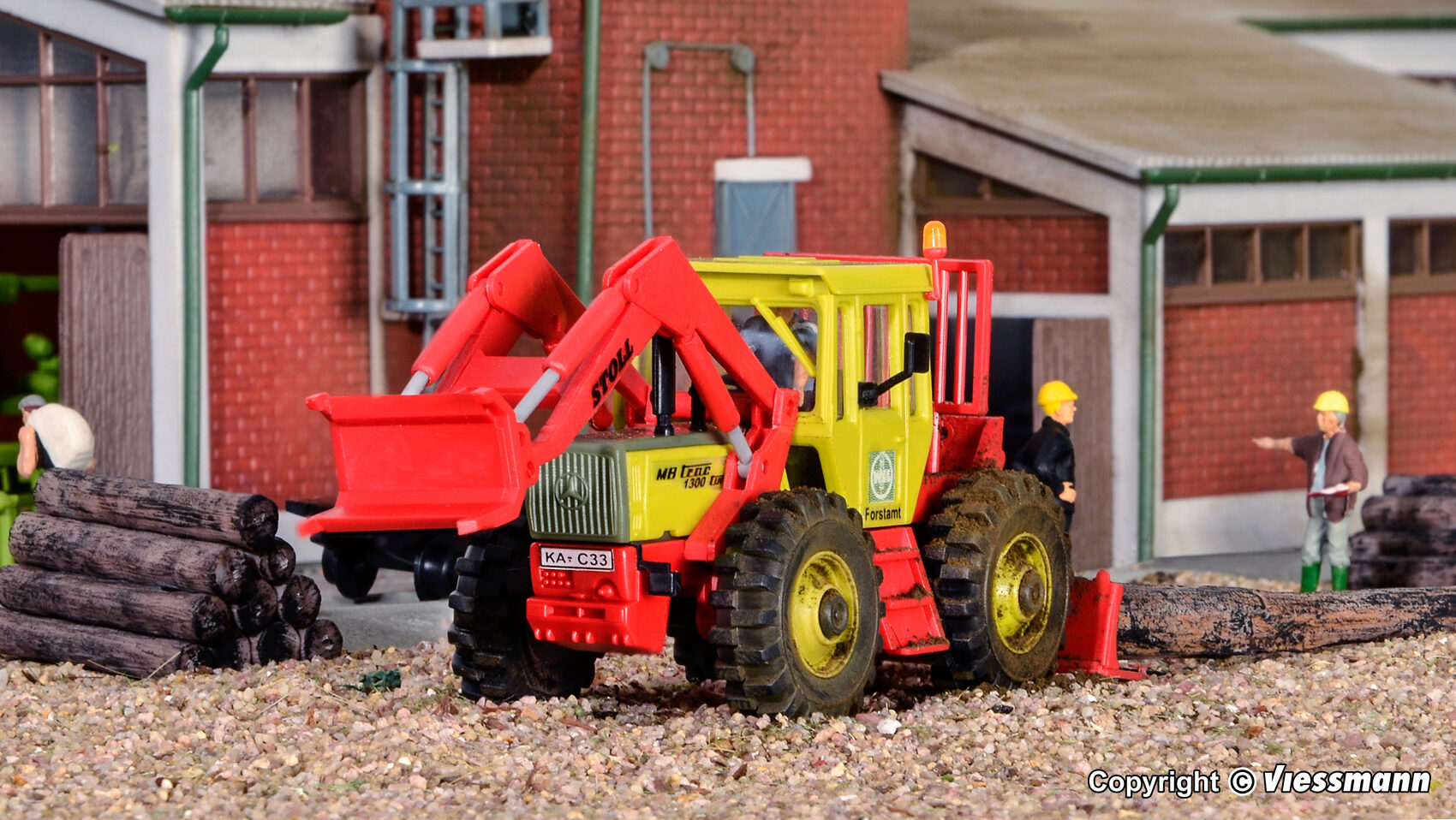 H0 MB TRAC mit Rückeschaufel, Polterschild und Winde