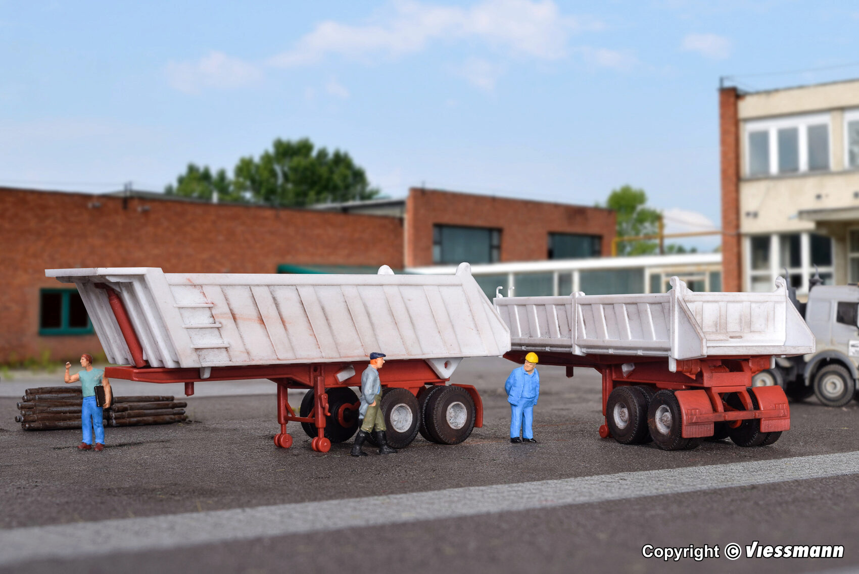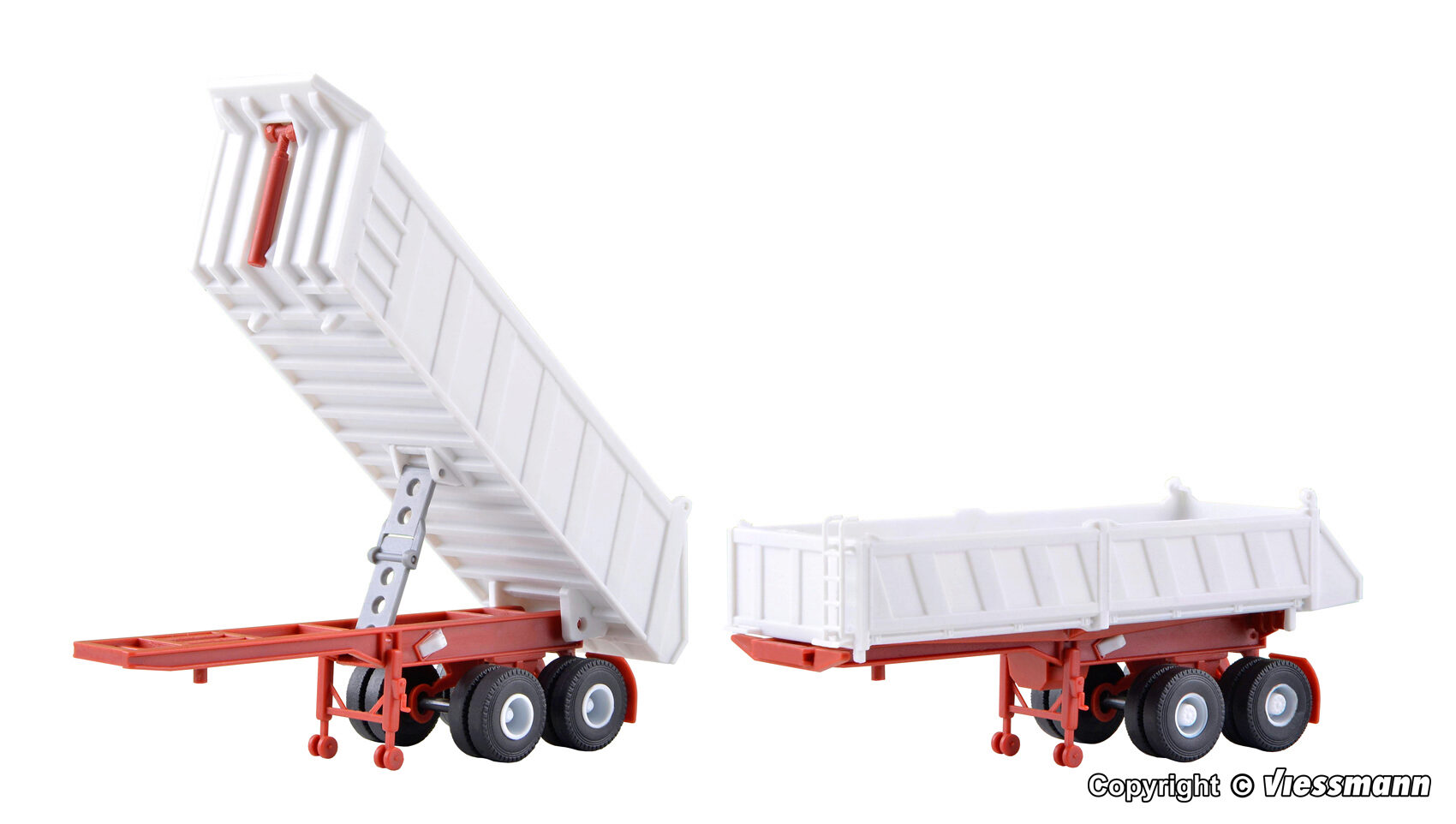 Bausatz. MEILLER Hinterkippsattelauflieger und MEILLER Kippsattelauflieger. Maße: L 10 x B 3 x H 3,1 cm, L 10 x B 3 x H 3,7 cm. Schwierigkeitsgrad: 2 (Fortgeschrittene).