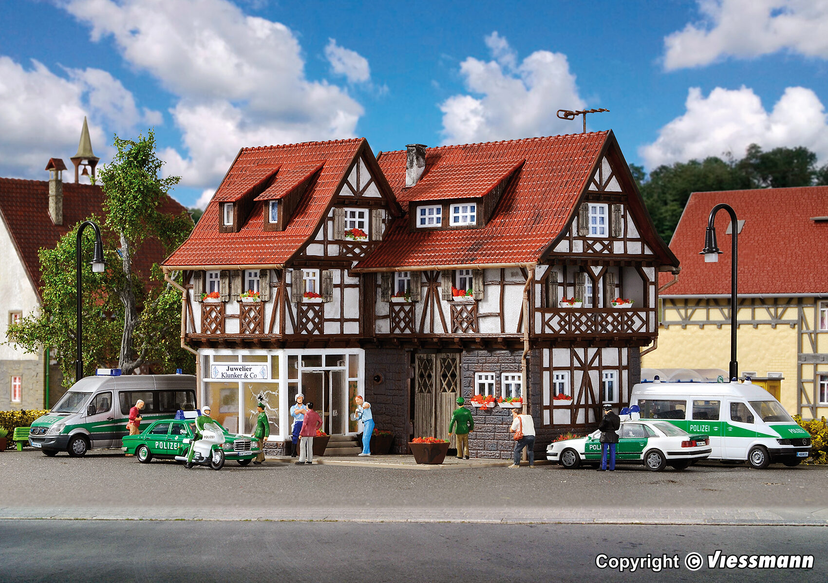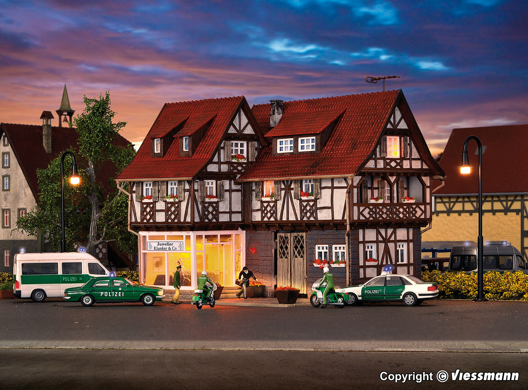 H0 Juweliergeschäft mit Überfallszenario und LED-Beleuchtung, Funktionsbausatz