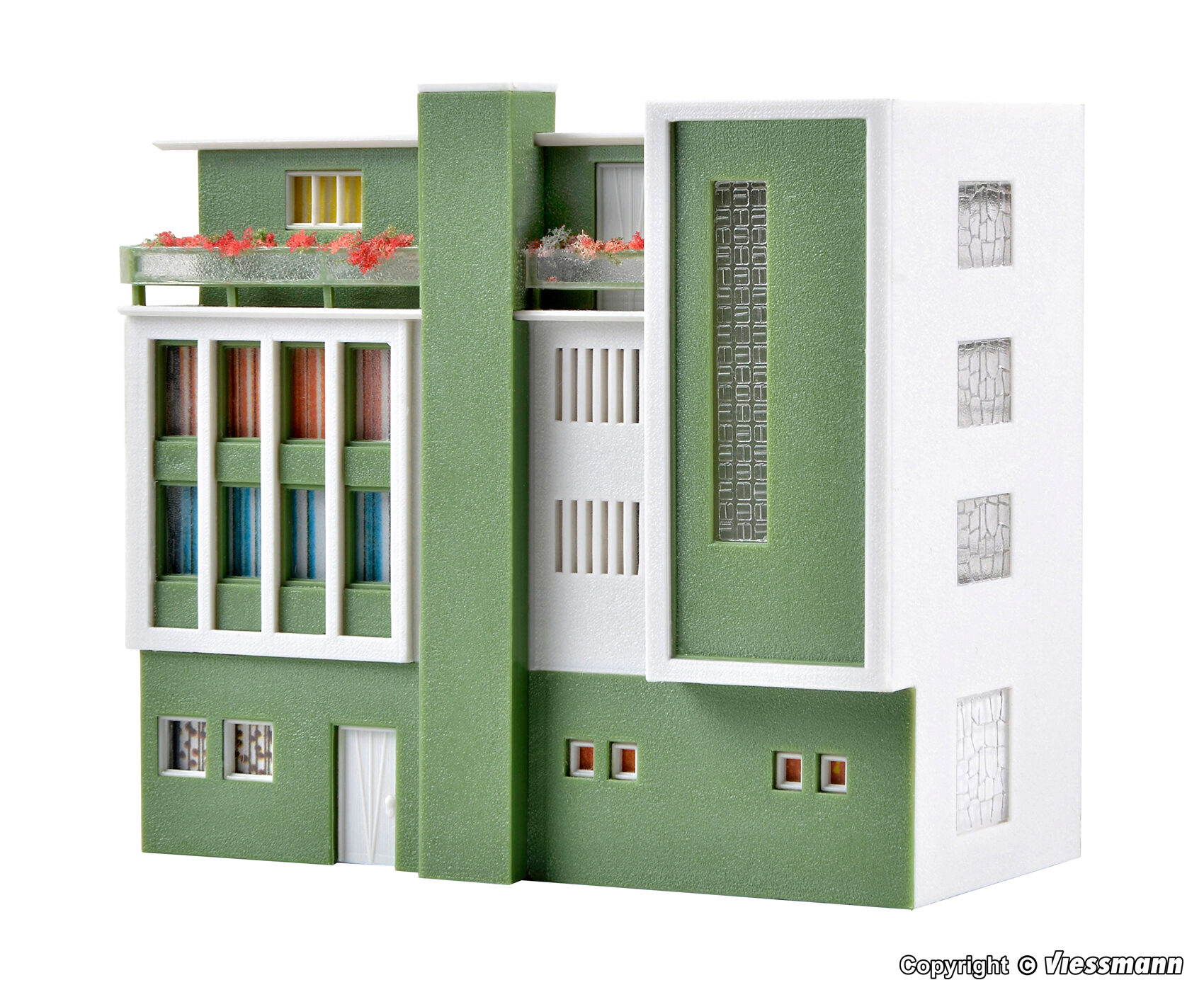 Dieses Gebäude entspricht dem Baustil der 50er und 60er Jahre des vergangenen Jahrhunderts. Ein Zweckbau ohne große Dekorationselemente. Maße: L 9,5 x B 4,5 x H 8,3 cm.