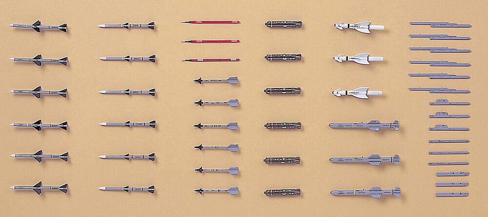Plastikmodellbausatz für Flugzeugbewaffnung moderner US-Flugzeuge. US Missiles/Launcher-Set.