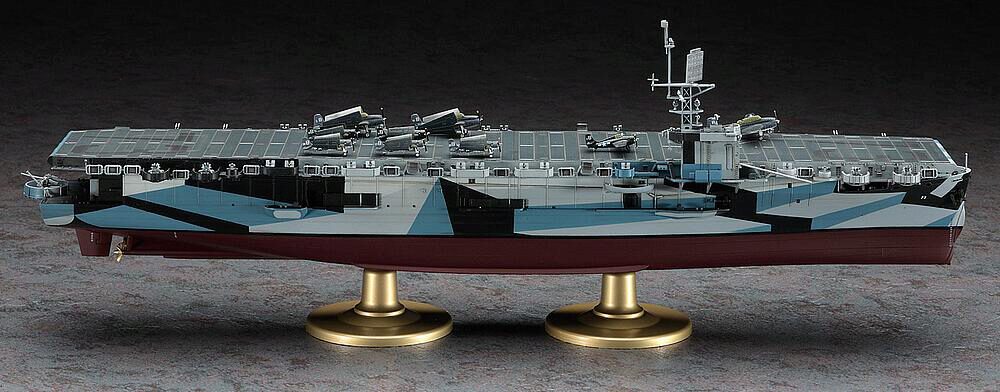 Plastikmodellbausatz eins US-Amerikanischen WWII Begleitschiffes mit 458 Teile. Inklusive 9 Flugzeuge.