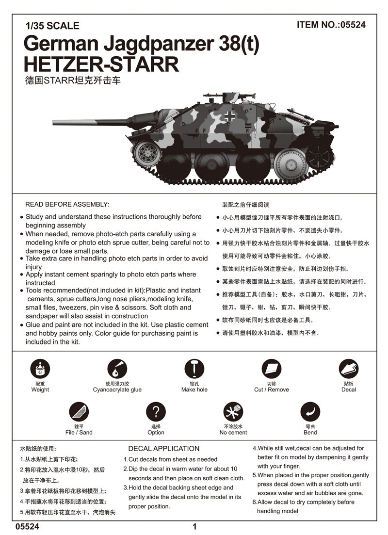 1/35 Deutscher Jagdpanzer 38 to. Hetzer-Starr