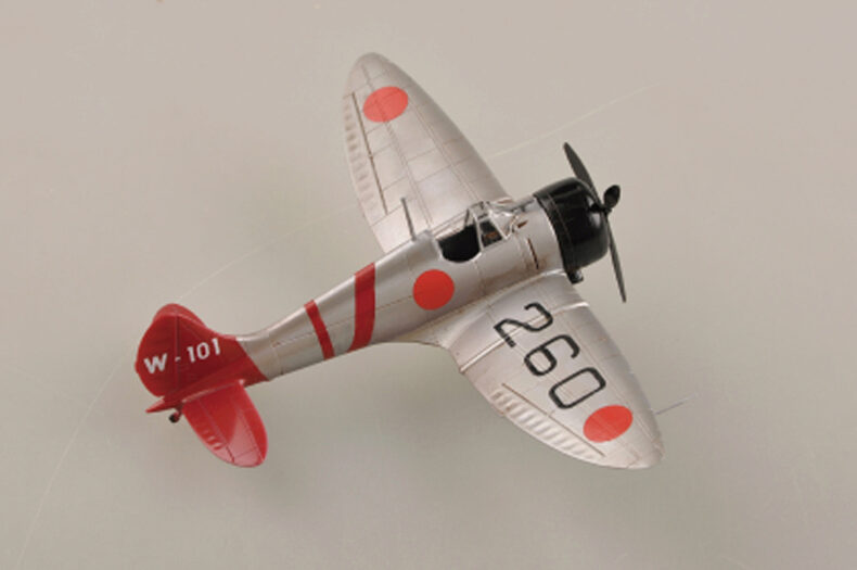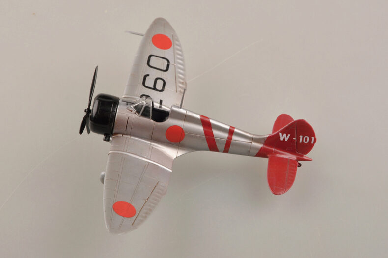 Plastikmodellbausatz eines japanischen WWII Kampfflugzeugs mit 20 Teilen. Länge gebaut: 105 mm / Flügelspannweite: 153 mm.
