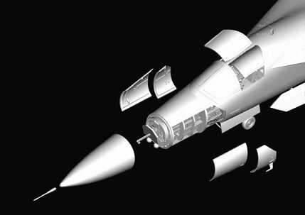 Plastikmodellbausatz eines US-amerikanischen Allwetter-Jets aus den 1960er Jahren mit 541 Teilen. Zwei Markierungen der US-Airforce möglich. Länge gebaut: 483 mm / Flügelspannweite: 400 mm.