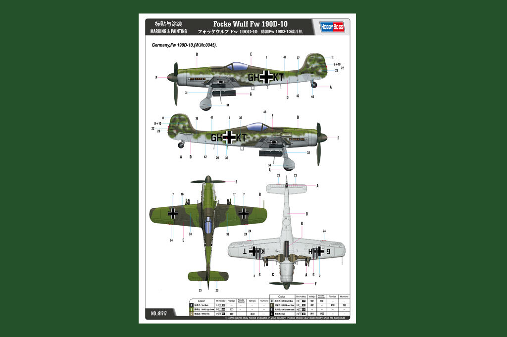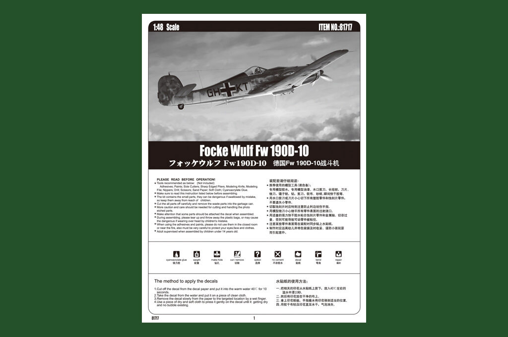 Plastikmodellbausatz eines deutschen WWII Jagdflugzeugs mit über 130 Teilen und einem Photätzteile. Länge gebaut: 213 mm / Flügelspannweite: 219 mm.
