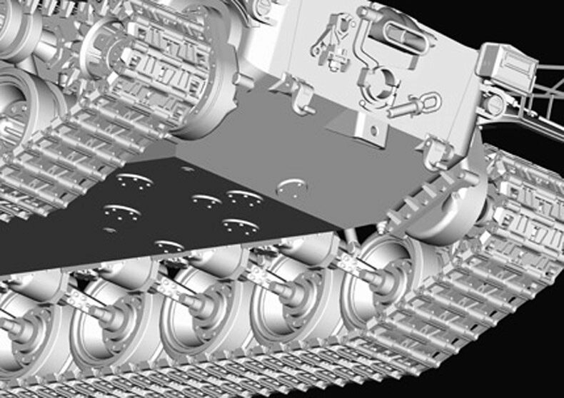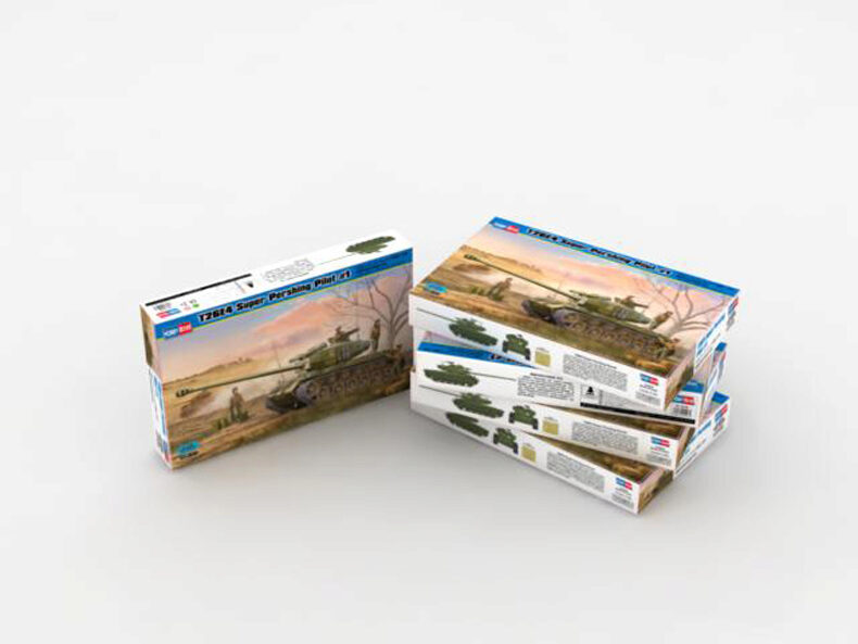 Plastikmodellbausatz eines US-amerikanischen, schweren Panzers aus den 1940er Jahren mit über 320 Teilen und Photoätzteilen. Länge gebaut: 292,9 mm / Breite: 100,9 mm / Höhe: 89,7 mm.