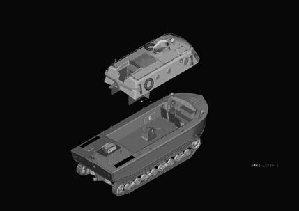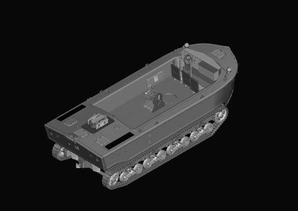 Plastikmodellbausatz eines deutschen WWII gepanzerten Amphibien-Fahrzeugs mit über 230 Teilen und Photoätzteilen. Länge gebaut: 249,9 mm / Breite: 100,82 / Höhe: 67,71 mm.
