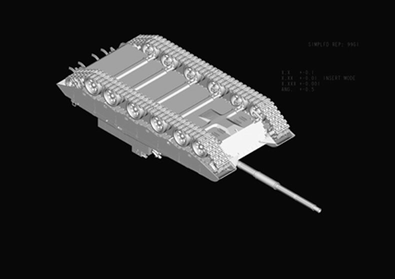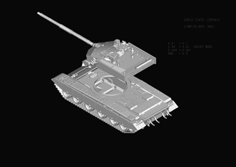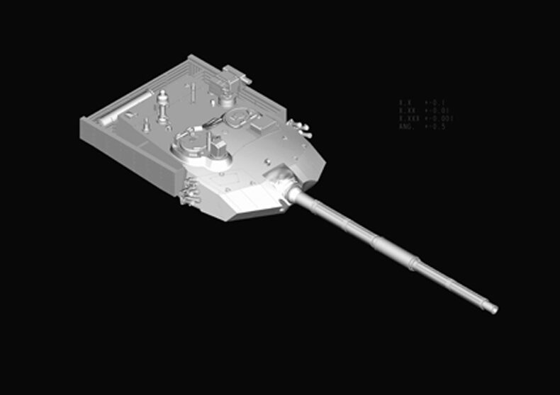 Plastikmodellbausatz eines modernen chinesischen Panzers mit über 450 Teilen und Photoätzteilen. Länge gebaut: 332 mm / Breite: 107 mm / Höhe: 92,5 mm.