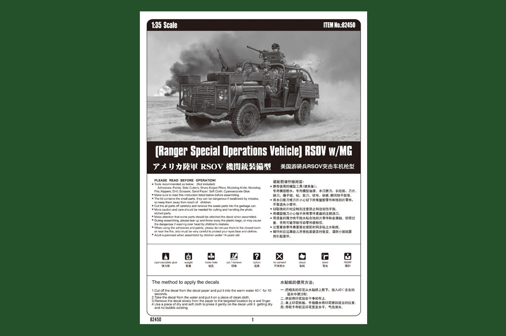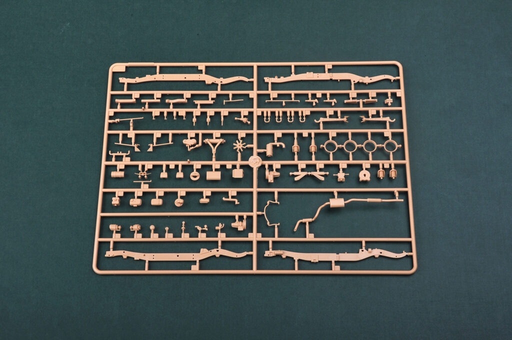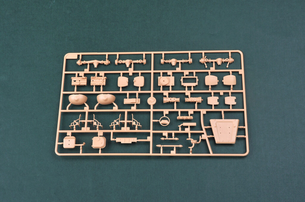 Plastikmodellbausatz eines modernen US-amerikanischen Militärjeep für Sondereinsätze. Über 190 Teilen, Photoätzteilen und Gummireifen. Länge gebaut: 134,6 mm lang / Breite: 55,4 mm.