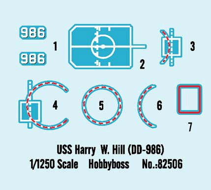 Plastikmodellbausatz eines US-amerikanischen Zerstörers der Spruance-Class aus den 1970er Jahren mit 36 Teilen und Ständer. Länge gebaut: 137,5 mm / Breite: 15 mm.