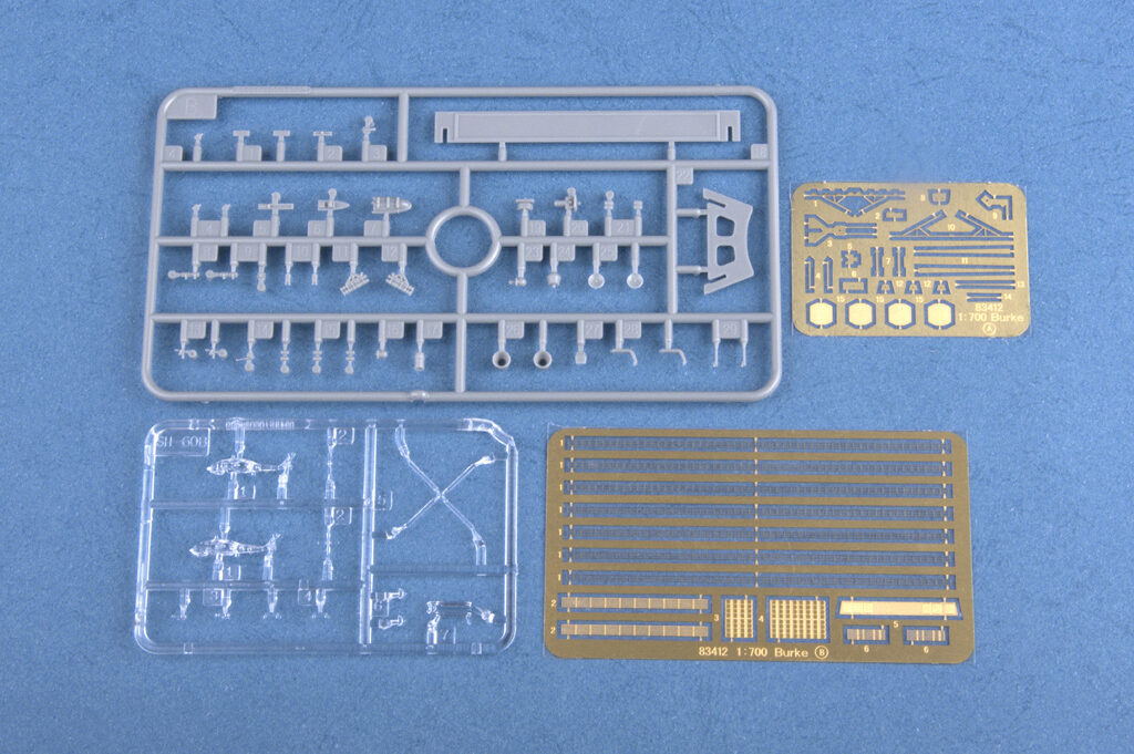 | Total Sprues | 5 sprues, upper hull, lower hull, superstructure , decks and waterline plate |