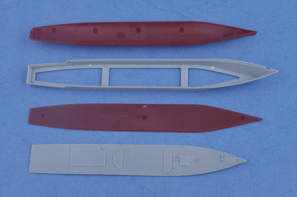 | Total Sprues | 5 sprues, upper hull, lower hull, superstructure , decks and waterline plate |