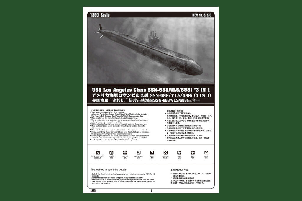 | More Features | The kit consists of over 60 parts - Photo Etched parts for nameplate and propeller - contains display stand Optional Los Angeles Class SSN-688 / VLS / 688I |