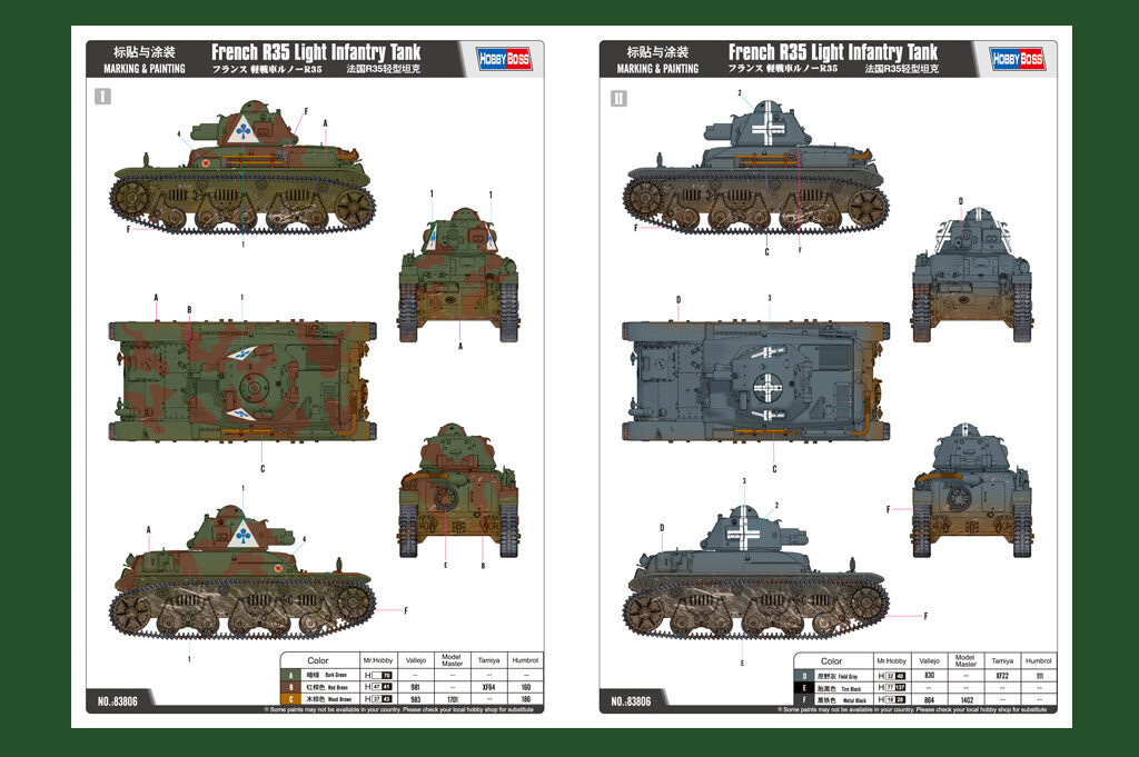 Plastikmodellbausatz eines französischen WWII Panzers mit über 420 Teilen und Photoätzteilen. Länge gebaut 120 mm / Breite 55,3 mm.