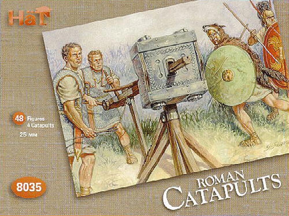 Rom: Römische Katapulte. Figuren zum Bemalen. Packung enthält 48 Figuren und 4 Katapulte.