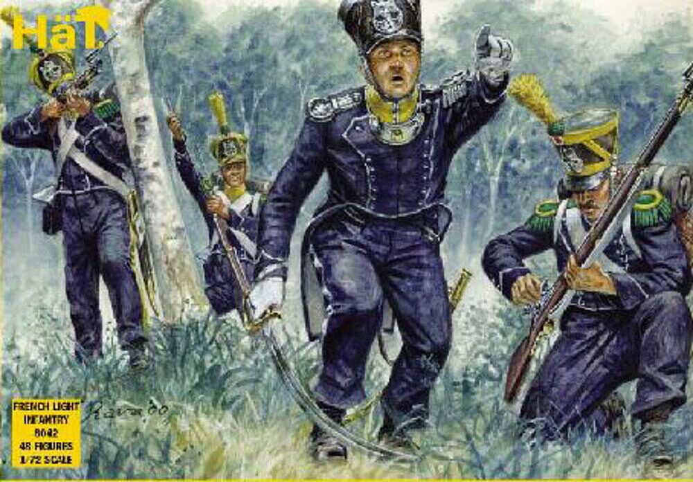 Napoleonische Kriege: Französische leichte Infanterie. Figuren zum Bemalen. Packung enthält 48 Figuren.