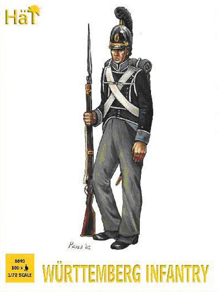 Napoleonische Kriege: Württembergische Infanterie. Figuren zum Bemalen. Packung enthält 100 Figuren in unterschiedlichen Posen.