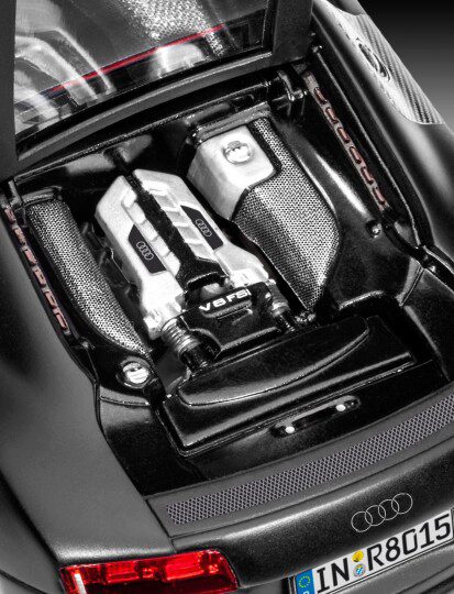 - Sehr detaillierter, mehrteiliger Achtzylinder-Mittelmotor
