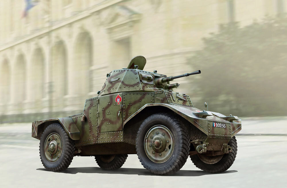 Plastikmodellbausatz eines franzörischen Radpanzers aus den 1930er Jahren.