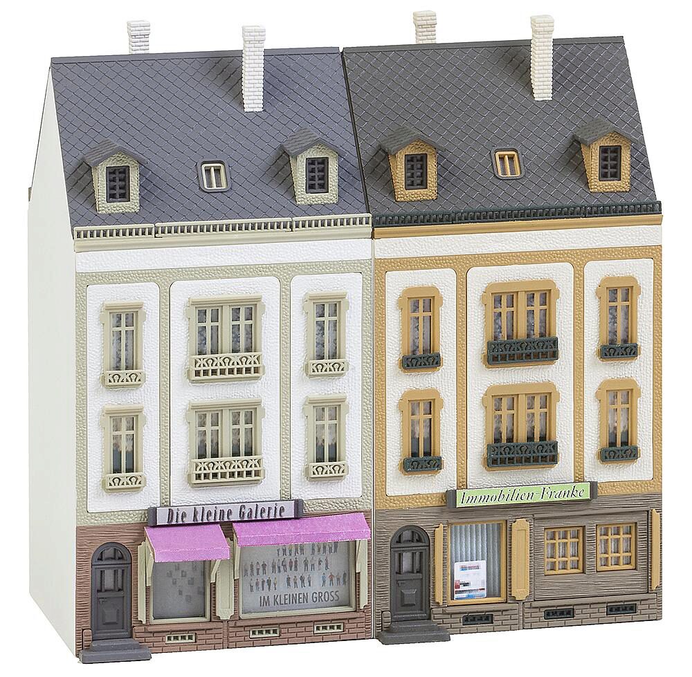 Dieser Bausatz enthält: 434 Einzelteile in 9 Farben, Fensterteile, 2 Gardinenmasken, 2 Dekos und 2 Bauanleitungen. Verwenden Sie zum Basteln FALLER - Plastikkleber.