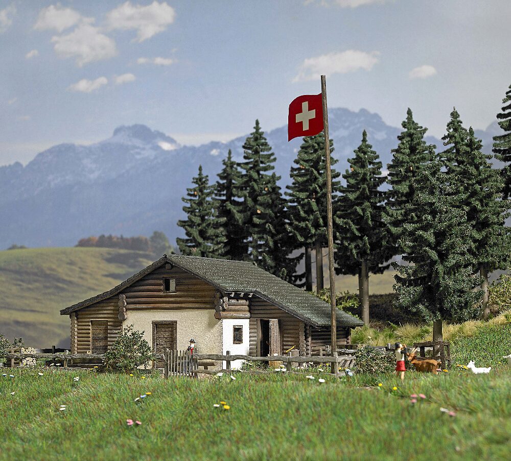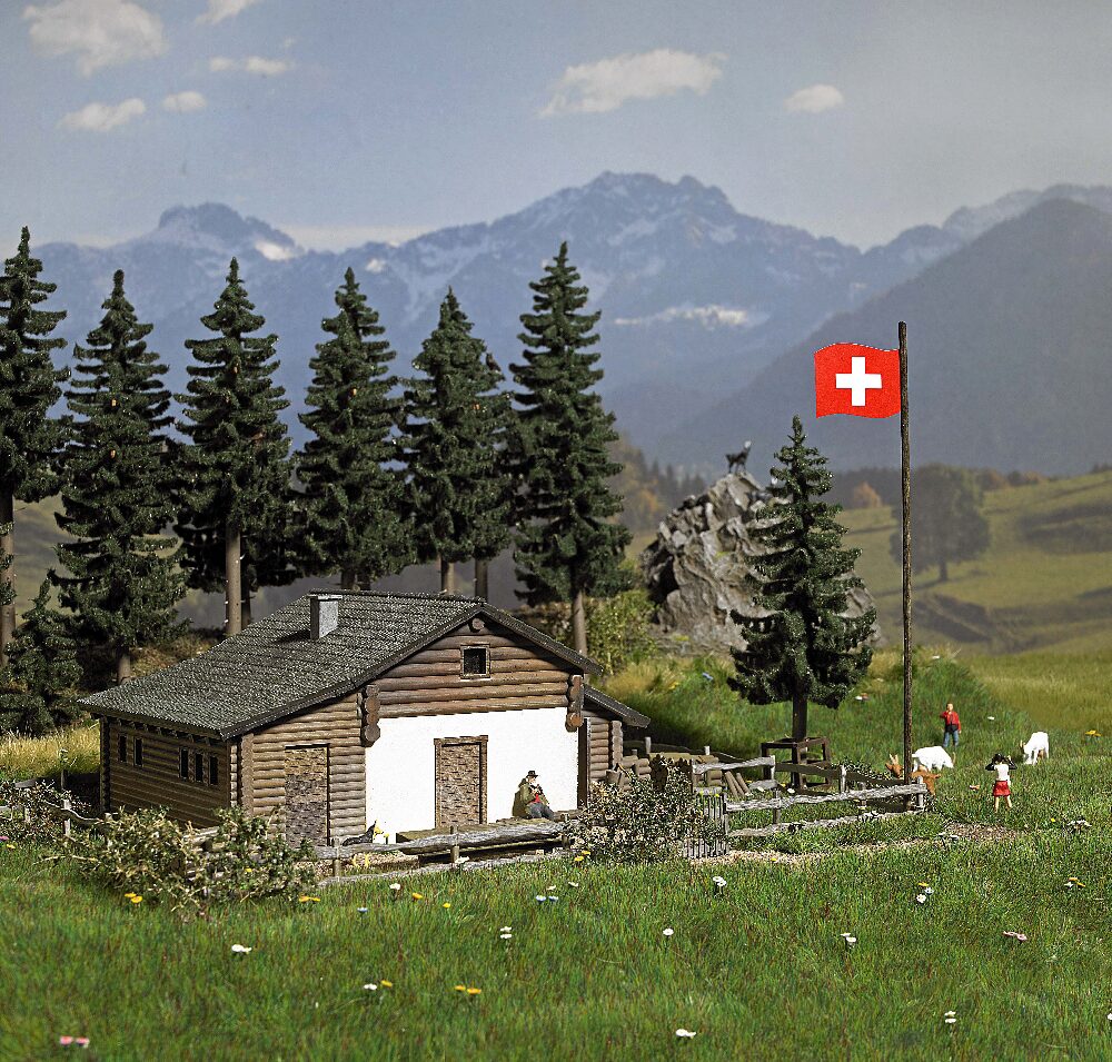Diese idyllische Alpenszenerie ist wie geschaffen für die Modellbahnanlage oder auch für ein Diorama. Das große Busch-Sortiment bietet alle erdenklichen Produkte und Baumaterialien, um Berge, Wälder, Almen & Co. Realistisch in Szene zu setzen. Im Mittelpunkt dieser Bergwelt stehen nun die zwei berühmten Heidihäuser, die Busch exklusiv als Bausätze anbietet (1442 Heidihaus und 1443 Heidialp). Ihren berühmten Vorbildern bis ins kleinste Detail nachempfunden, sind die Gebäude leicht zu bauen und bilden die entsprechende Kulisse für alpenländische Architektur.