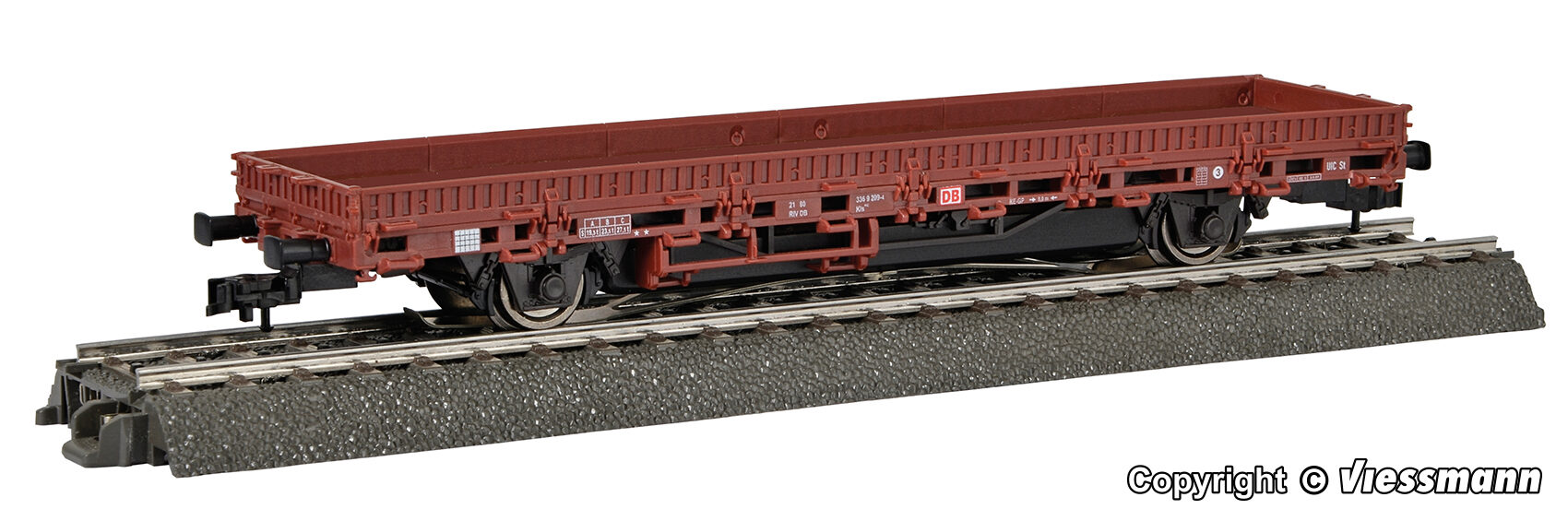 Der selbstfahrende Niederbordwagen ist ideal geeignet, um bei Lokomotiven, die keine Motorisierung besitzen, im Verbund den Antrieb zu ersetzen. Die DB hat zwischen 1958 und 1967 mehr als 14 200 2-achsige Flachwagen mit Seitenwandklappen und klappbaren Stirnborden beschafft. Sie dienten zur Beförderung von Fahrzeugen, z. B. Kaelble Zugmaschinen KV 633/632, und von Gütern mit großem Raumbedarf. Die Wagen ohne Seitenrungen wurden ab 1965 als Kls bezeichnet. Als Modell können sie von Epoche III – VI eingesetzt werden. Eigengewicht 12 100 kg, max. Lademasse 27,5 t, LüP 13 860 mm. Der patentierte Unterflurantrieb, ähnlich wie beim ROBEL, ist der flachen Bauweise des Niederbordwagens optimal angepasst. Bei Langsamfahrt, im Betrieb mit Sound, digital und analog überzeugt dieses Modell den technikbegeisterten Modellbahner. Mit elektrischem Antrieb. Das integrierte Soundmodul gibt die Pfeife und verschiedene betriebsabhängige Geräusche wieder. Digitaldecoder für DCC/MM und Analogbetrieb (AC/DC) mit integriertem Stromspeicher, RailCom-fähig. Ein typischer Diesel- oder Dampfloksound ist per CV auswählbar. An einer Stirnseite befinden sich 2 zweipolige schaltbare Steckbuchsen, an denen z. B. eine Zugschlussbeleuchtung angeschlossen werden kann.