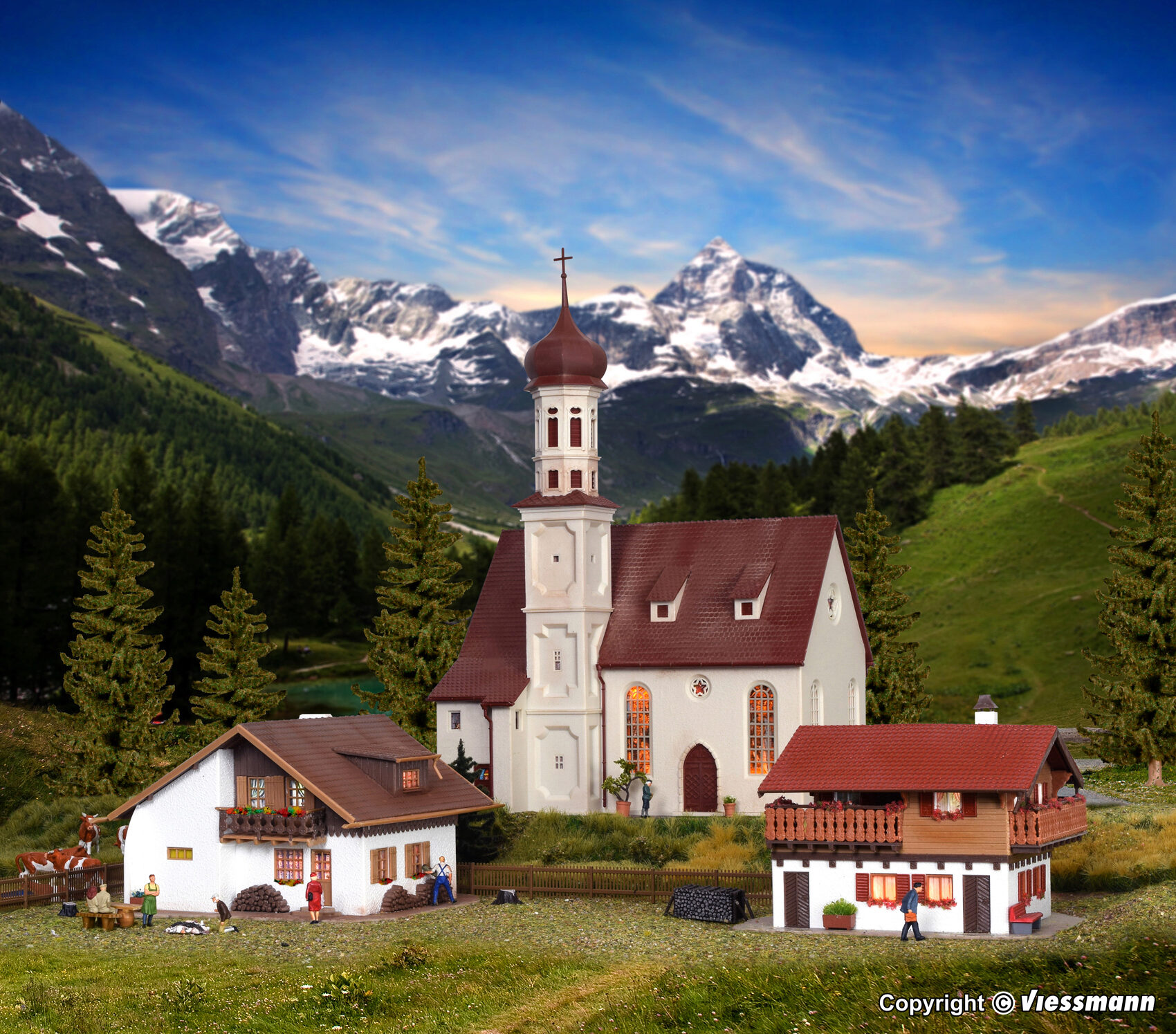Dieses liebliche alpenländische Set besteht aus der Kirche St. Andrä Art. 43709, dem Haus Wetterstein Art. 43703 und Haus Wiesengrund Art. 49251. Damit legen Sie den Grundstein für ein kleines alpenländisches Dorf zum günstigen Preis. Maße: 43703: L 12 x B 11 x H 8,5 cm. 43709: L 18,6 x B 14 x H 28,5 cm. 49251: L 12,5 x B 13 x H 7,8 cm.