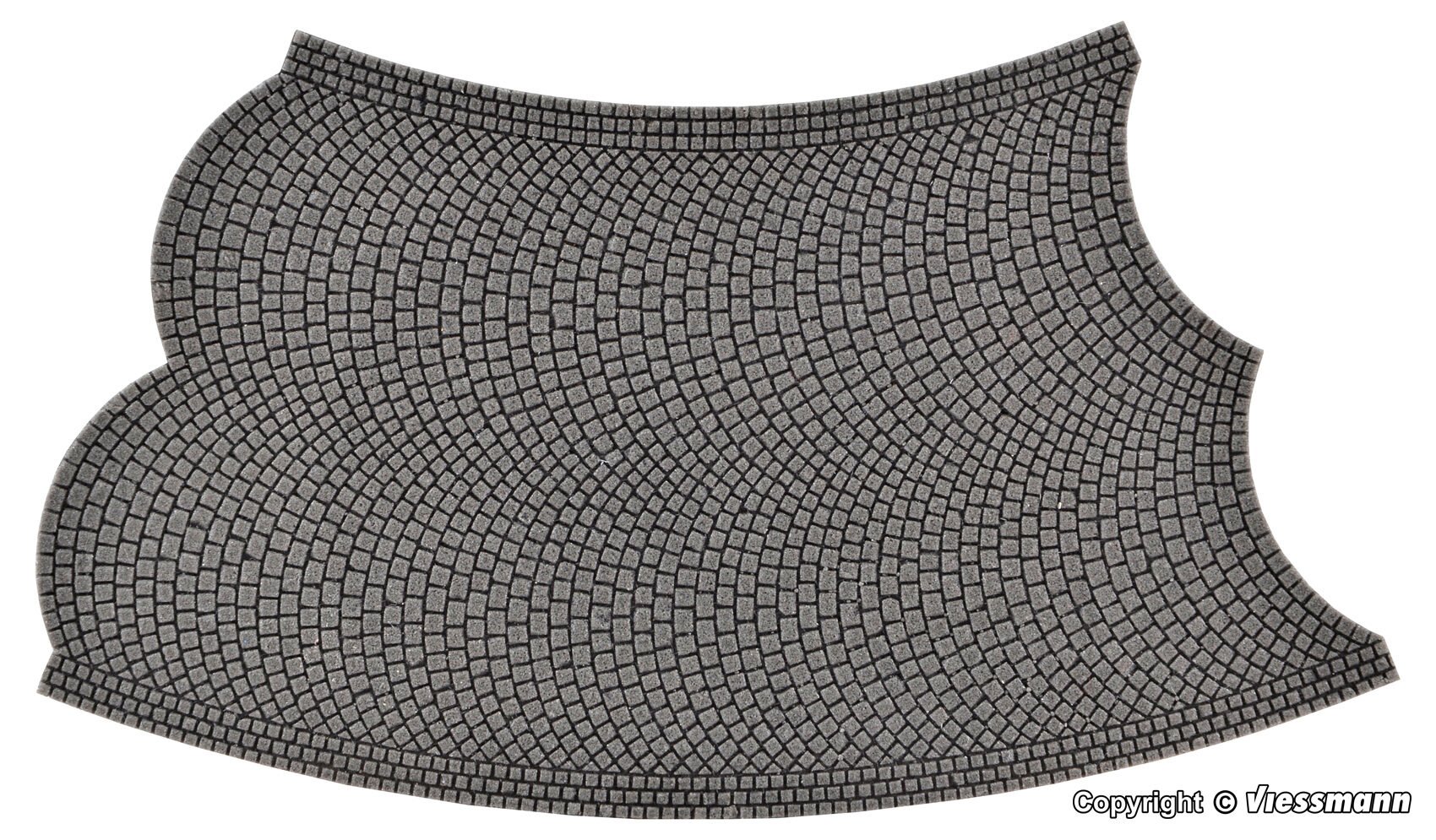 H0 Strassenplatte Kopfsteinpflaster aus Steinkunst, 45°-Kurve, Radius 12 cm