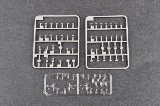 | Total Sprues | 27 sprues, upper hull, lower hull, water line plate, decks and stand |