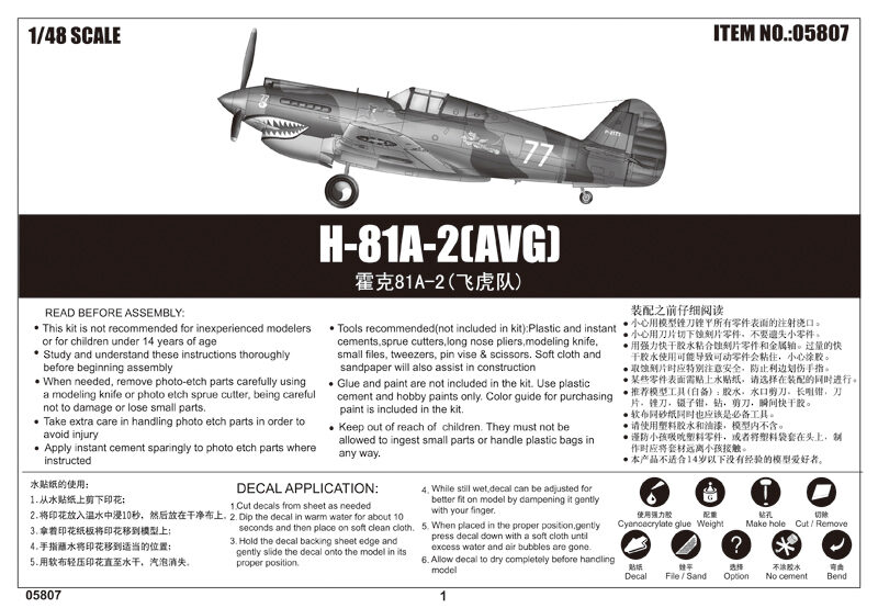 1/48 Curtiss Hawk P40 H-81A-2AVG