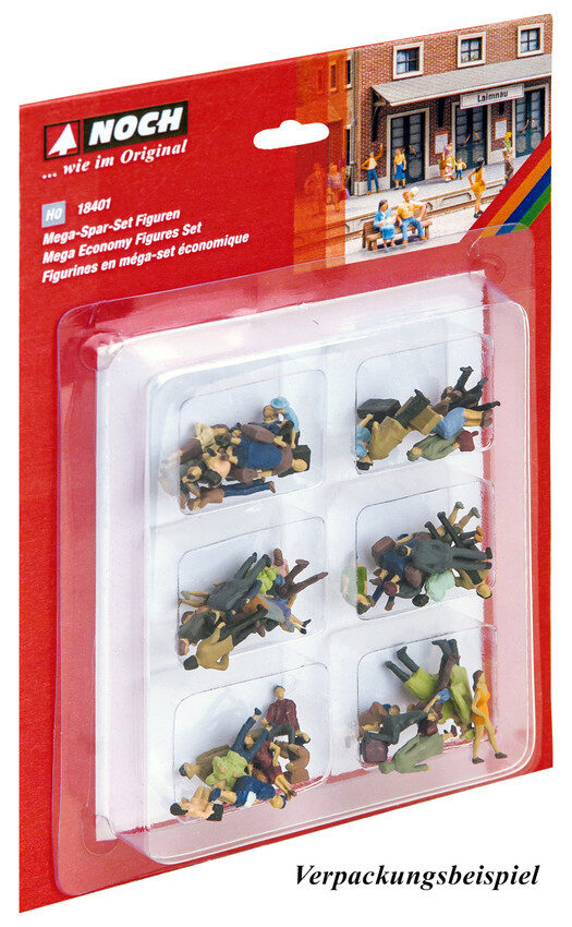 Billiger geht´s nicht! Dieses Mega-Spar-Set enthält 60 handbemalte Figuren in der Spur TT(Maßstab 1:120, ca. 1,5 cm hoch). Dieses Set eignet sich ideal zum Gestalten von Plätzen in Dörfern und Städten. Sie finden eine Vielzahl verschiedener Farbkombinationen um eine große Vielfalt auf Ihrer Modellbauanlage zu gewährleisten. Für jeden Bereich wo Sie eine große Anzahl von Figuren verbauen möchten eignet sich dieses Set hervorragend. Die Hobby-Figuren sind einfacher bemalt als die „normalen“ NOCH Figuren. Daher sind die Hobby Figuren die erste Wahl, wenn es darum geht Plätze, Dörfer, Städte, Bahnsteige, Parks, Felder, Waggons und vieles mehr preisgünstig zu bevölkern. Die besonders preiswerten NOCH Hobby-Figuren erkennen Sie an der roten Verpackung.
