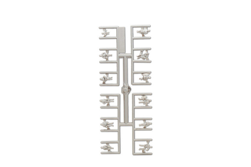Dank der Entwicklung einer speziellen Spritzgussform entfällt der Zusammenbau der Figuren vor dem Bemalen – diese sind bereits in einem Stück am Spritzling.