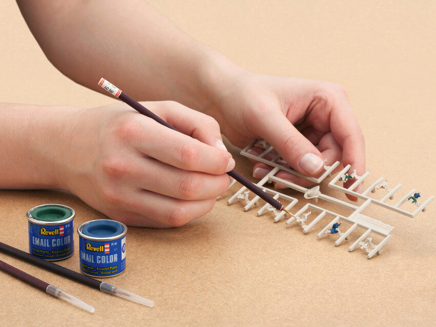 Die Farben, können Sie bei Ihrem Fachhändler kaufen. Revell® bietet ein großes Sortiment an Farben, aus denen Sie für die Bemalung Ihrer Figuren wählen können.