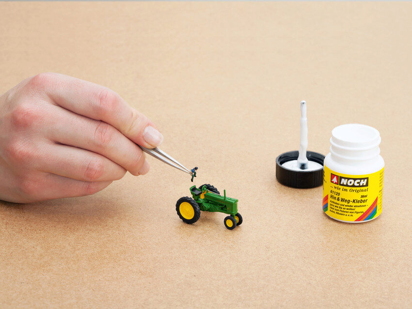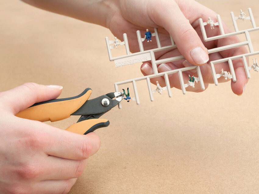 Die Bemalung der Figuren kann ganz einfach direkt am Spritzling erfolgen, dadurch haben Sie beim Bemalen das Modell immer fest im Griff. Nachdem die Figur vollständig bemalt und die Farbe getrocknet ist, wird sie einfach vom Spritzling getrennt und in die Modell-Landschaft geklebt.