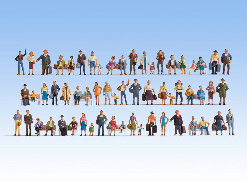 Noch nie war es so einfach und zugleich so günstig, Ihre Modell-Szenen mit Leben zu füllen! Das Set umfasst 60 aufwendig handkolorierte Figuren und eignet sich ideal für den Einsatz in Bahnhofs- und Stadtszenen.