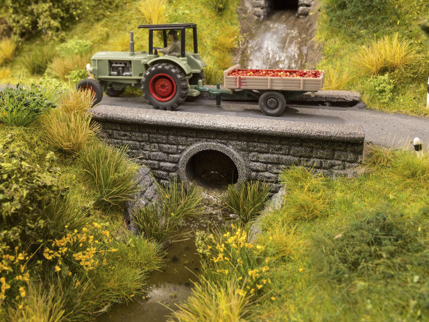 Das Wasserdurchlass "Rohr" ist multifunktional und sorgt einerseits dafür, dass das Wasser fließen kann. Andererseits ist die Brücke befahrbar und bietet viele Möglichkeiten für eine NOCH perfektere Landschaftsgestaltung Ihrer Modellbahnanlage.