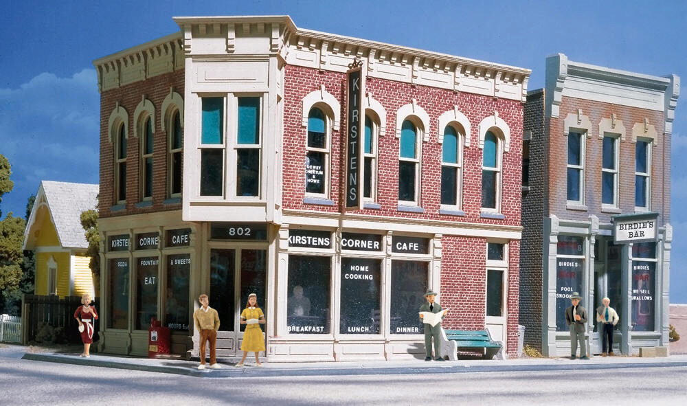 Add life to your downtown street with this figure set that includes four men and two women. One man reads his paper while he waits for the bus, and his companions stand in various poses ready for conversation or window-shopping.