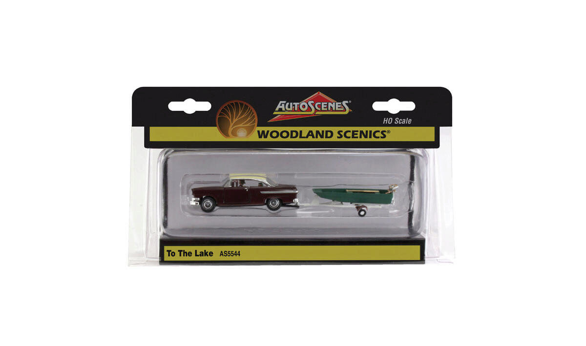 Lake-goers are loaded up and ready to go with their boat and vintage outboard motor in tow.